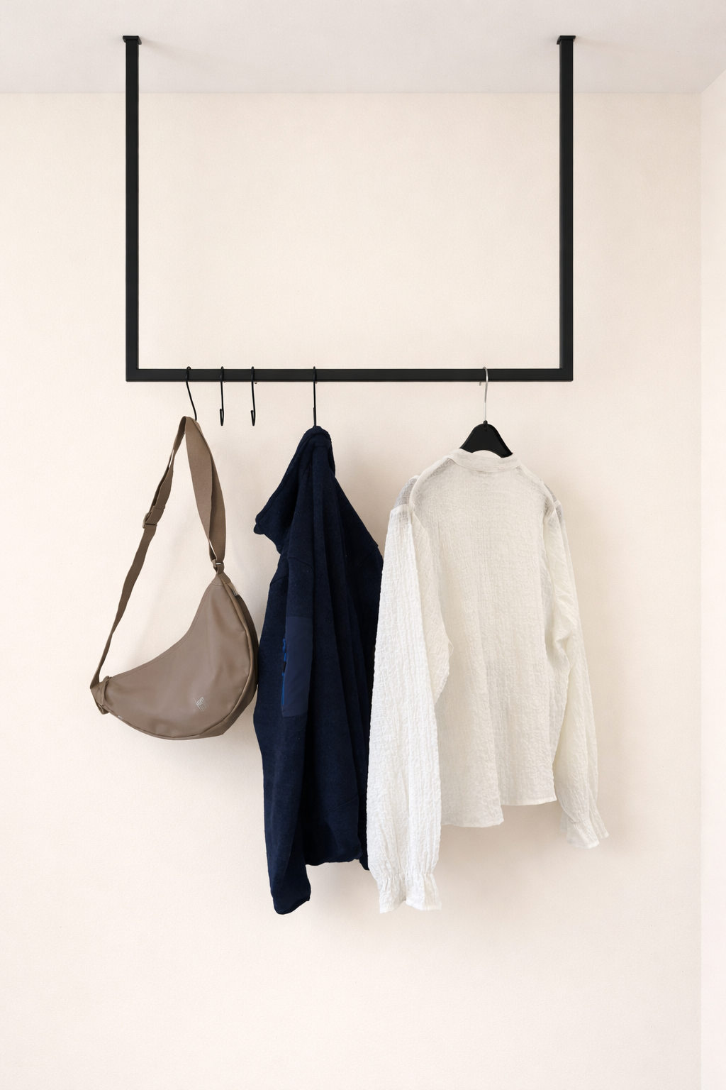 Die fein strukturierte Pulverbeschichtung ist kratzfest und pflegeleicht. Sie verleiht der Oberfläche eine matte, hochwertige Haptik und schützt zuverlässig im täglichen Gebrauch, ideal als Handtuchhalter im Bad, Garderobe im Flur oder Kleiderstange im Schlafzimmer.